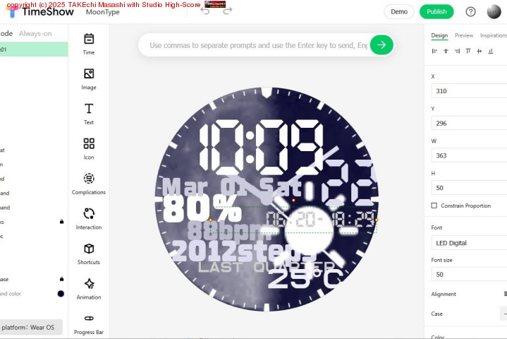 再燃のスマートウォッチ文字盤作成。いつまでも習作。欲張りなので取れる情報を全部表示したいと並べている。風向風速最高最低気温 WiFi の強度…は知らんでもいいかな?