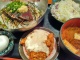 日替わり定食。カツオのタタキ丼とミニ南蛮