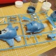 21:56:31 たまご F-2。組んでからと思っていたけど青(ミディアムブルー)も塗り始める。コリャまたムラムラ! 白もまだまだ! マスキングもせずに横着ランナー筆塗りは続く!!