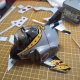 この後,コクピット周りのスカーフを貼って,どうにか隙間に目と三角を貼る。
