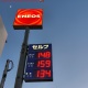 ガソリン。安くなったなぁ。と見上げれば上弦のお月さま。