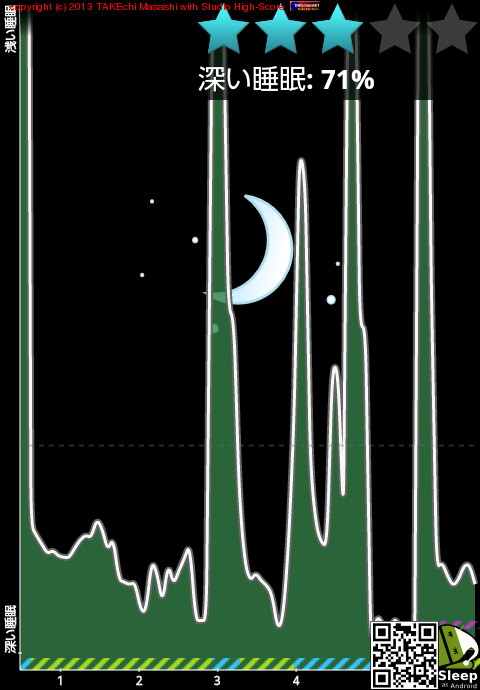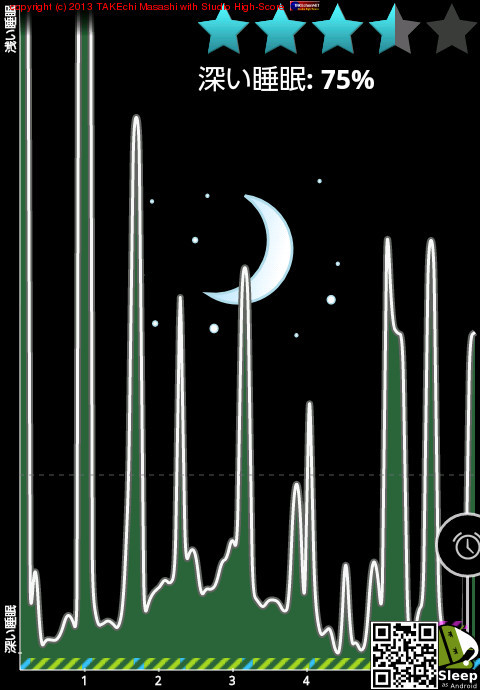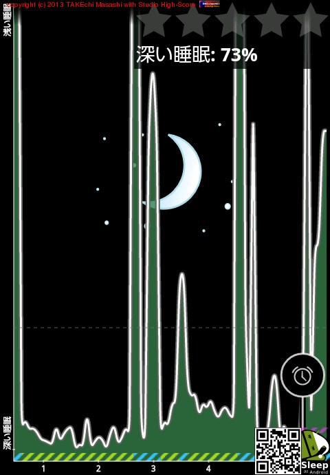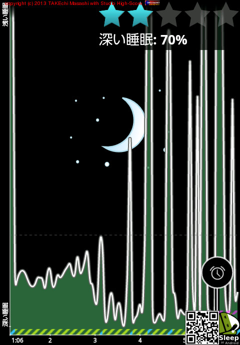 04/11 1:06 → 04/11 6:13 (5:07) 深い睡眠: 70%