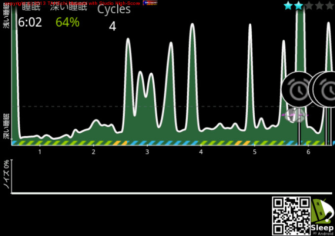 08/09 0:28 → 6:30 (6:02) 深い睡眠: 64 Cycles 4%