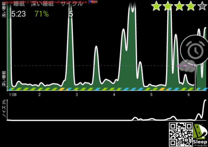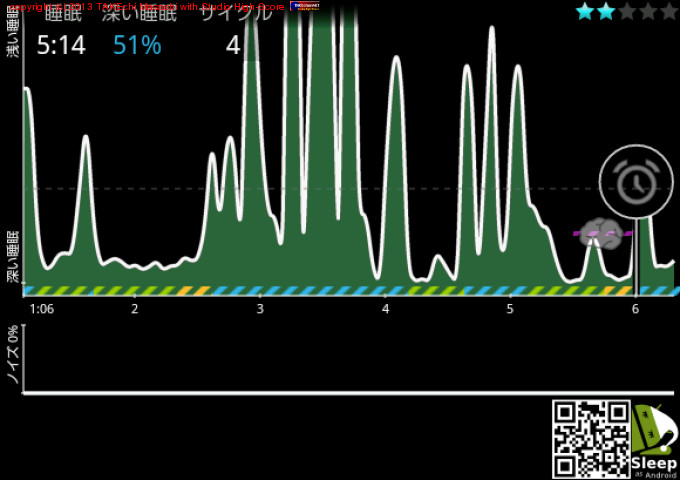 08/13 1:06 → 6:21 (5:14) 深い睡眠: 51% サイクル 4