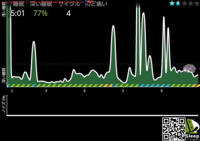 08/14 1:58 → 7:00 (5:01) 深い睡眠: 77% サイクル 4