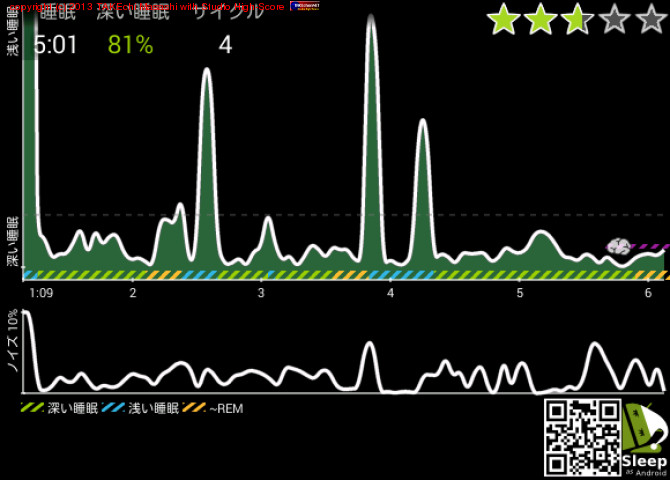 09/13 1:09 → 6:10 (5:01) 深い睡眠: 81% サイクル 4