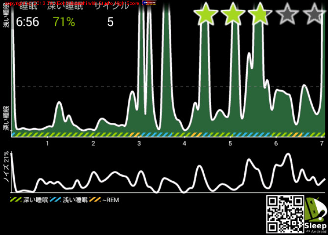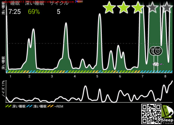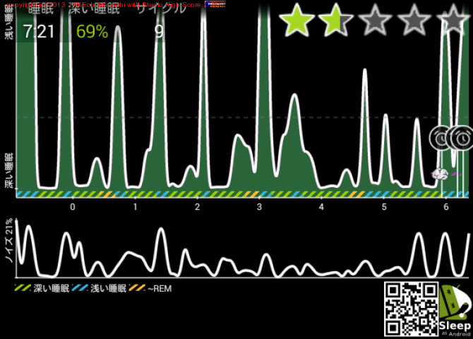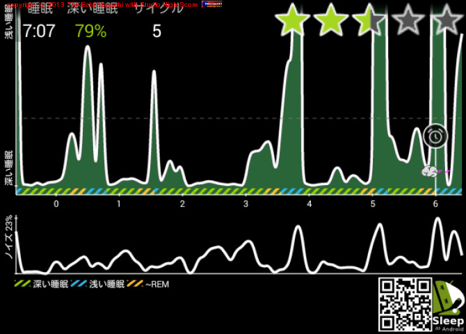 12/02 23:05 → 12/03 6:27 (7:21) 深い睡眠: 69% サイクル 9