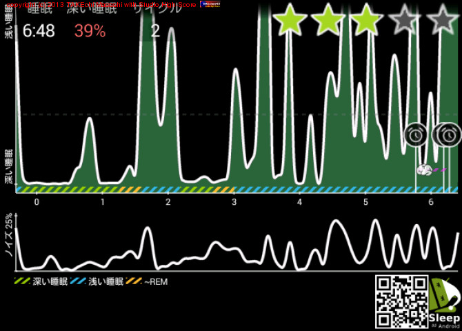 12/04 23:41 → 12/05 6:29 (6:48) 深い睡眠: 39% サイクル 2