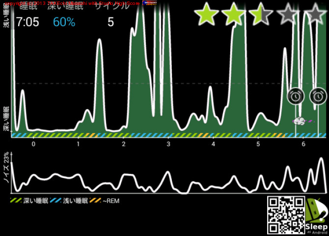 12/05 23:30 → 12/06 6:35 (7:05) 深い睡眠: 60% サイクル 5