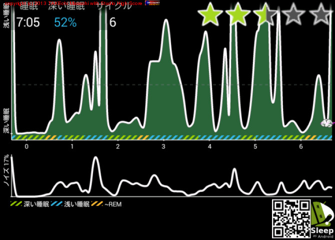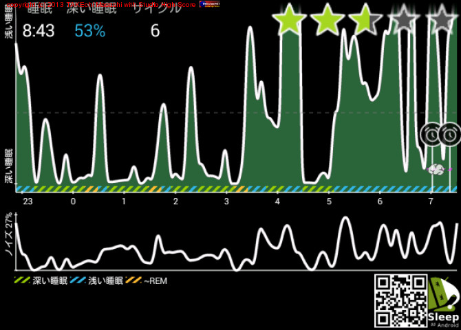 12/07 22:52 → 12/08 7:35 (8:43) 深い睡眠: 53% サイクル 6