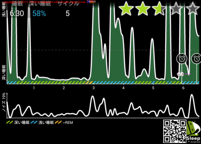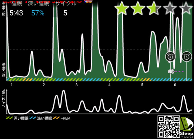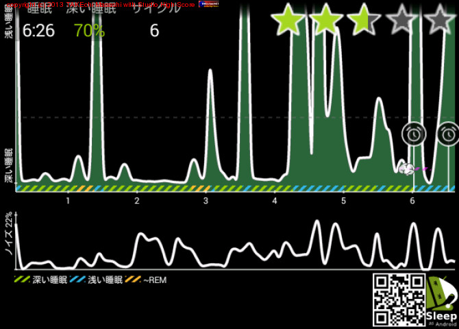 12/24 23:46 → 12/25 6:36 (6:49) 深い睡眠: 57% サイクル 6