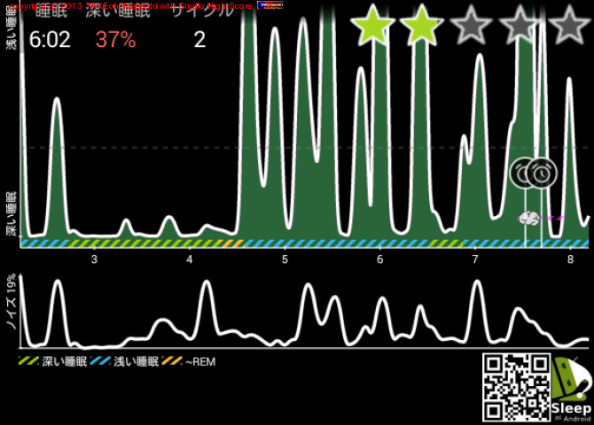 12/14 2:13 → 8:15 (6:02) 深い睡眠: 37% サイクル 2