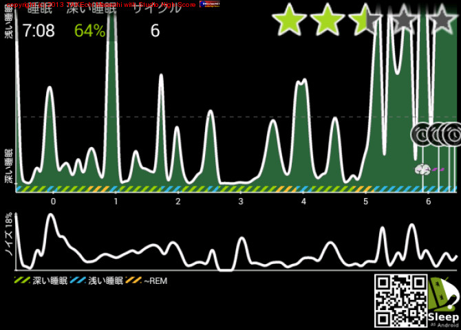 12/15 23:24 → 12/16 6:32 (7:08) 深い睡眠: 64% サイクル 6
