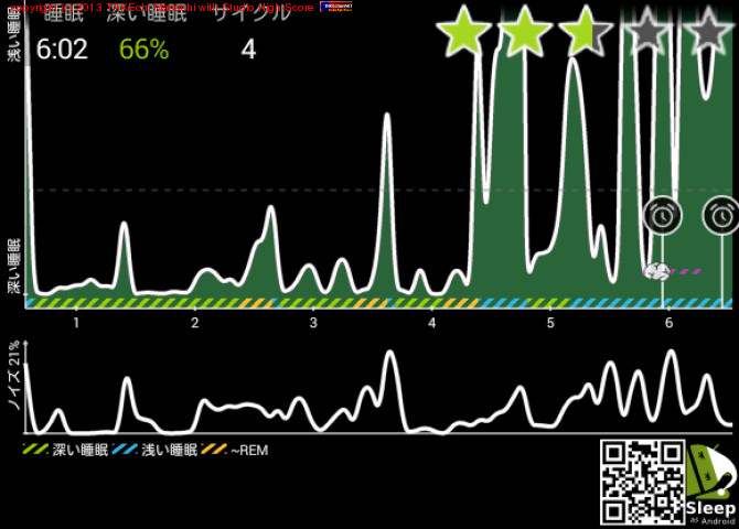 12/27 0:34 → 6:36 (6:02) 深い睡眠: 66% サイクル 4
