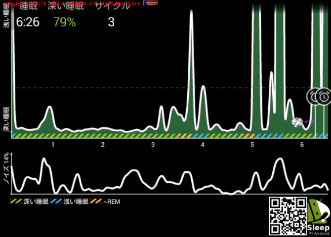 01/21 0:09 → 6:35 (6:26) 深い睡眠: 79% サイクル 3