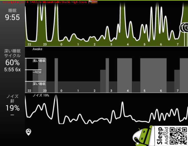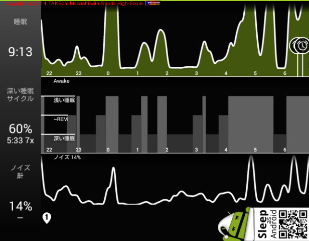 05/01 21:42 → 05/02 6:56 (9:13) 深い睡眠: 60% サイクル 7