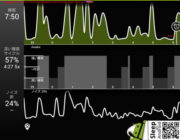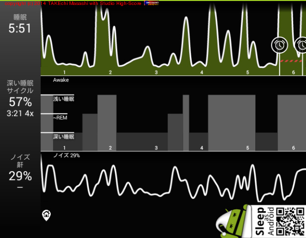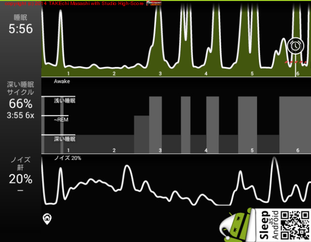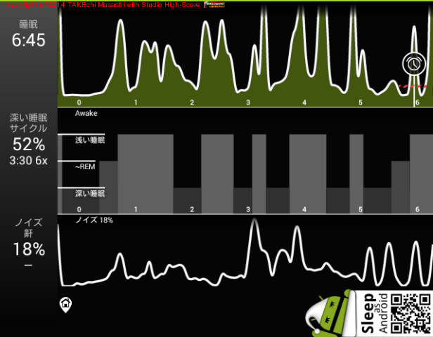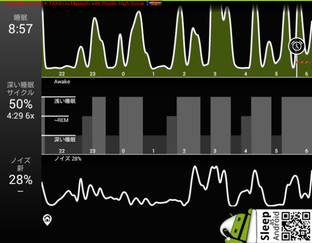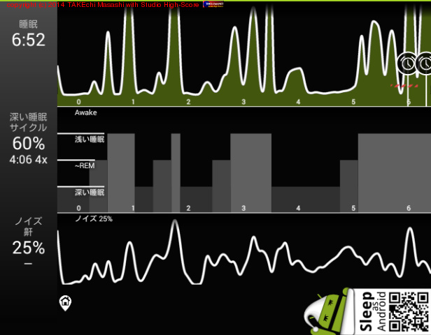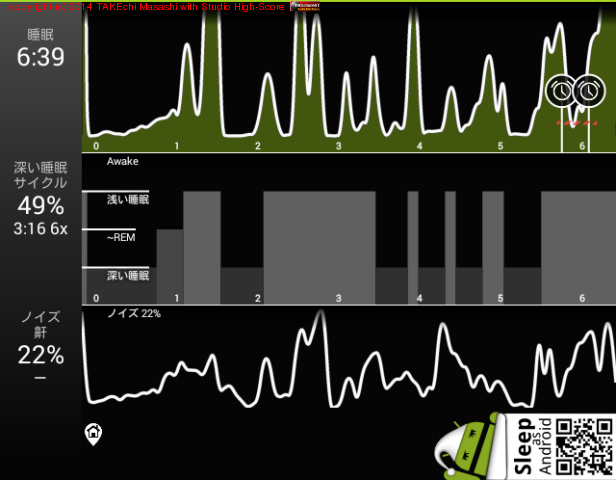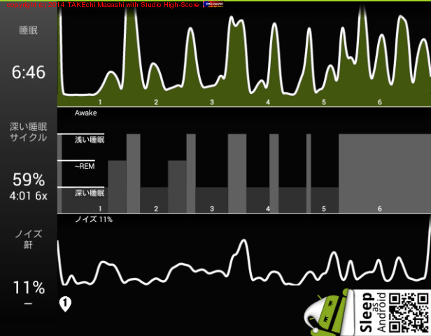 05/03 0:13 → 6:59 (6:46) 深い睡眠: 59% サイクル 6
