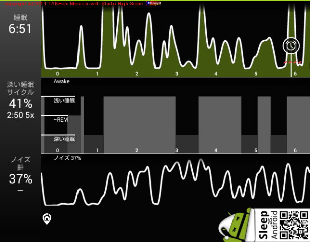 05/13 23:35 → 05/14 6:26 (6:51) 深い睡眠: 41% サイクル 5