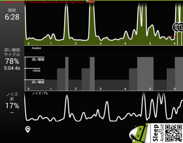 05/22 23:55 → 05/23 6:24 (6:28) 深い睡眠: 78% サイクル 4