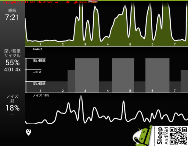 05/24 0:18 → 7:40 (7:21) 深い睡眠: 55% サイクル 4