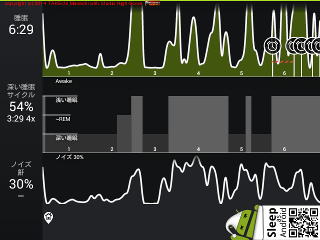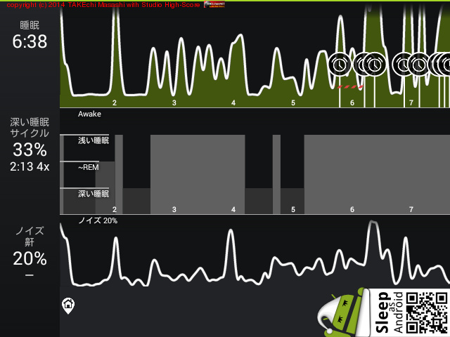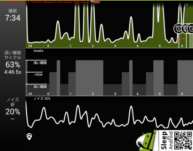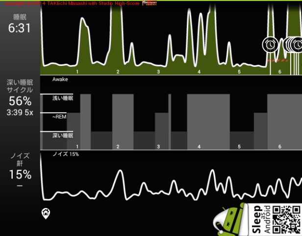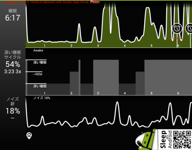 06/18 23:51 → 06/19 6:33 (6:42) 深い睡眠: 63% サイクル 6