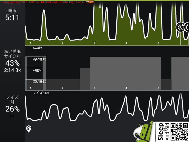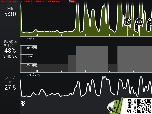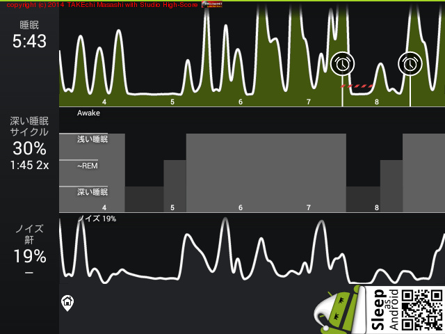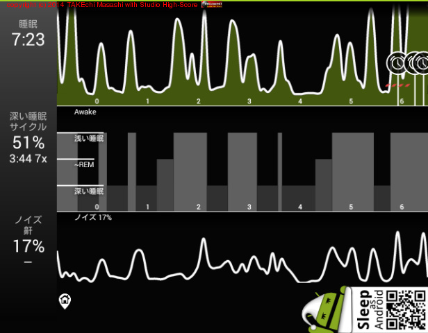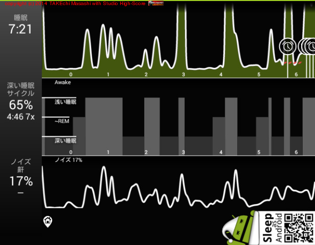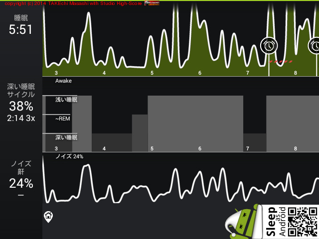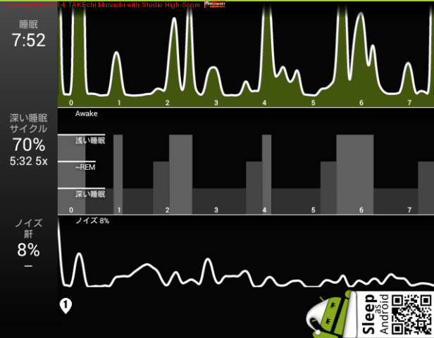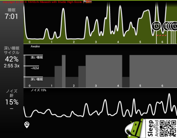 06/14 23:43 → 06/15 7:35 (7:52) 深い睡眠: 70% サイクル 5