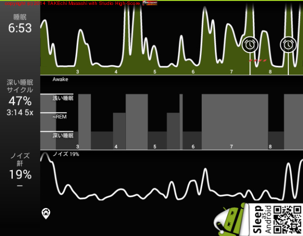 06/07 2:02 → 8:55 (6:53) 深い睡眠: 47% サイクル 5