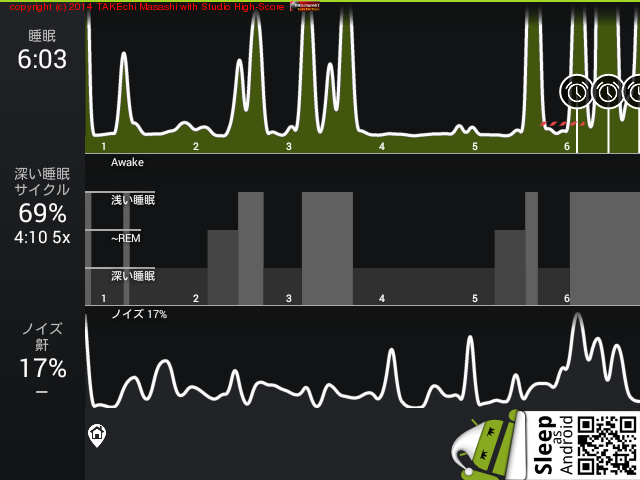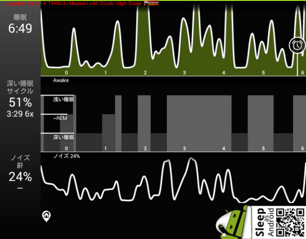 06/17 23:20 → 06/18 6:10 (6:49) 深い睡眠: 51% サイクル 6