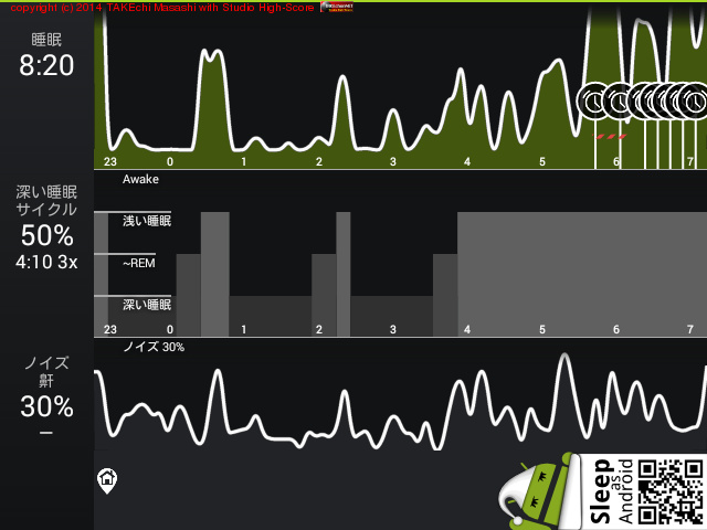 06/29 22:58 → 06/30 7:18 (8:20) 深い睡眠: 50% サイクル 3