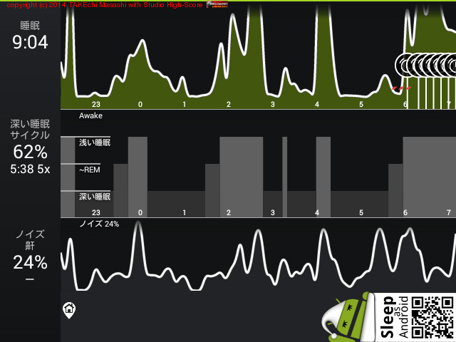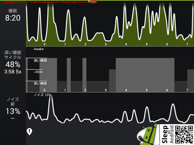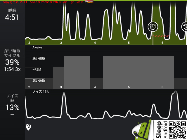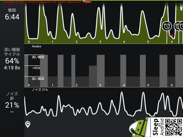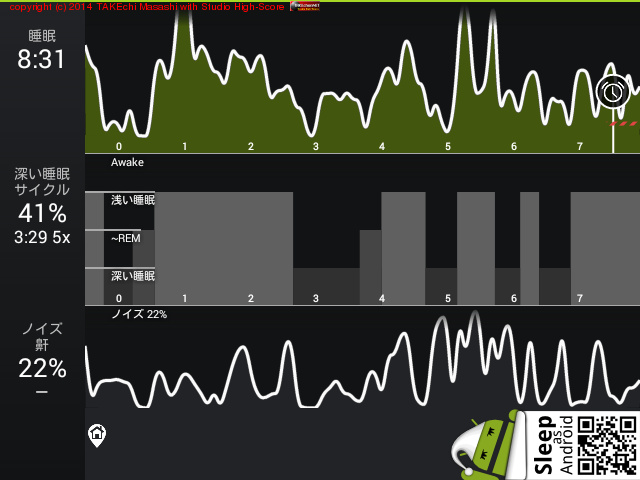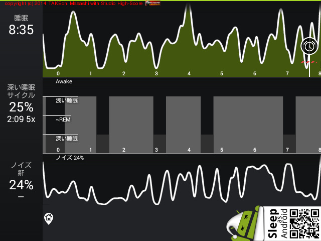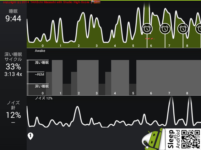 08/13 23:07 → 08/14 8:51 (9:44x) 深い睡眠: 33% サイクル 4