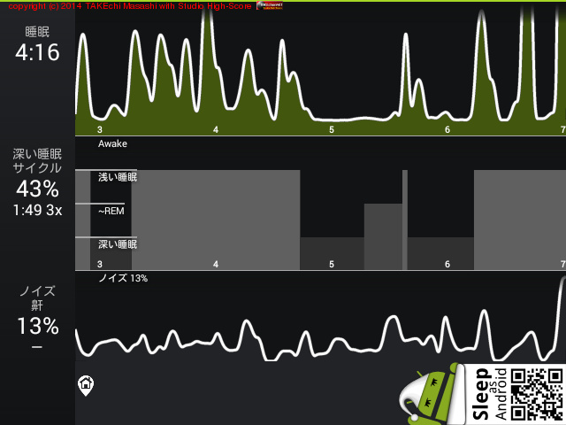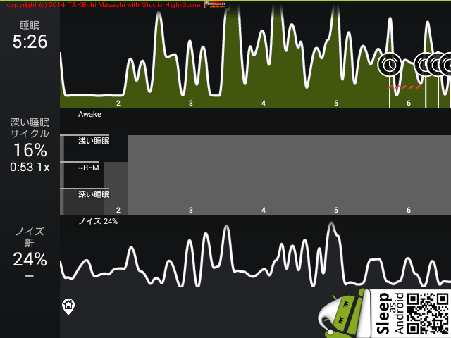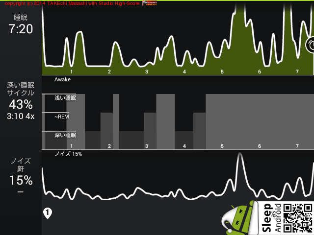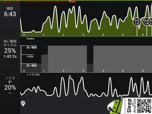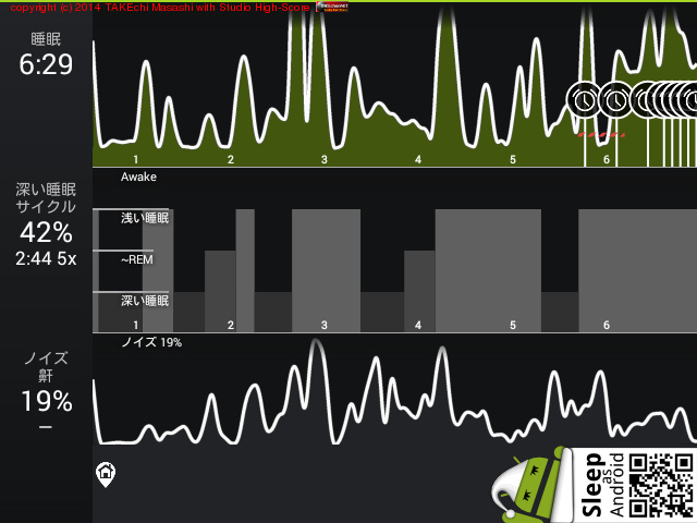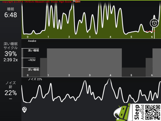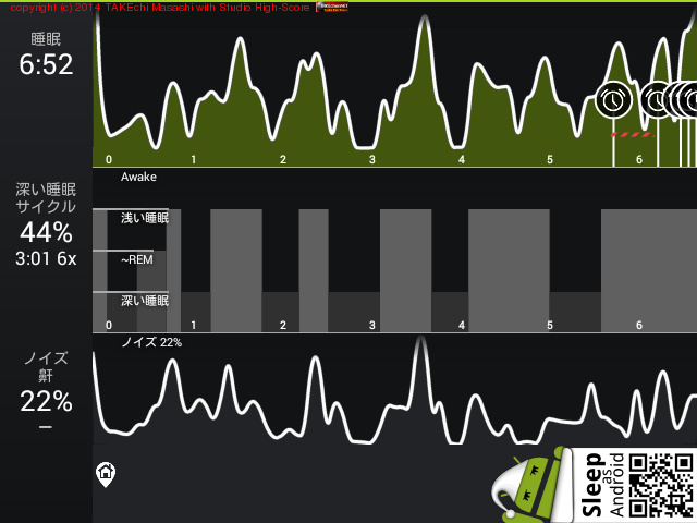08/11 23:51 → 08/12 6:43 (6:52) 深い睡眠: 44% サイクル 6