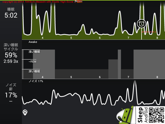 08/03 3:17 → 8:19 (5:02) 深い睡眠: 59% サイクル 3