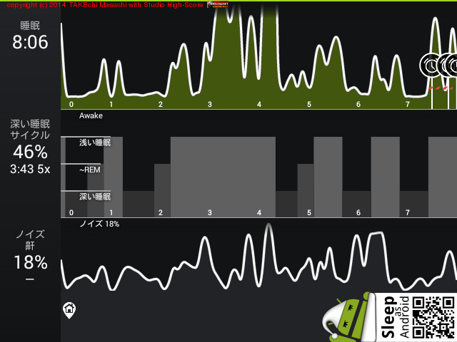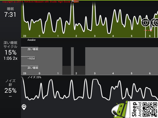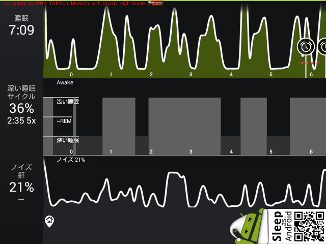 08/06 0:25 → 7:30 (7:05) 深い睡眠: 32% サイクル 3