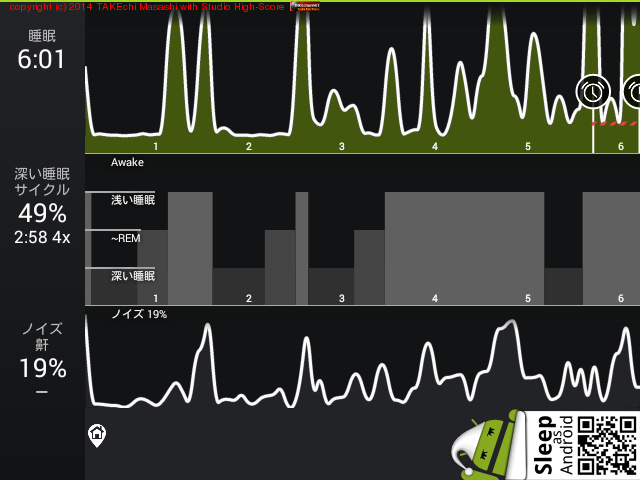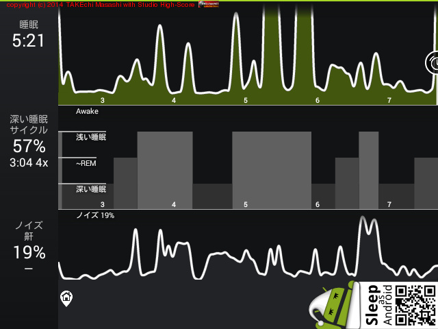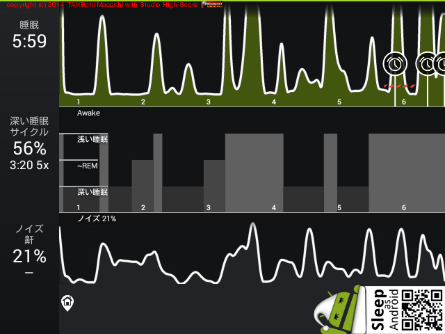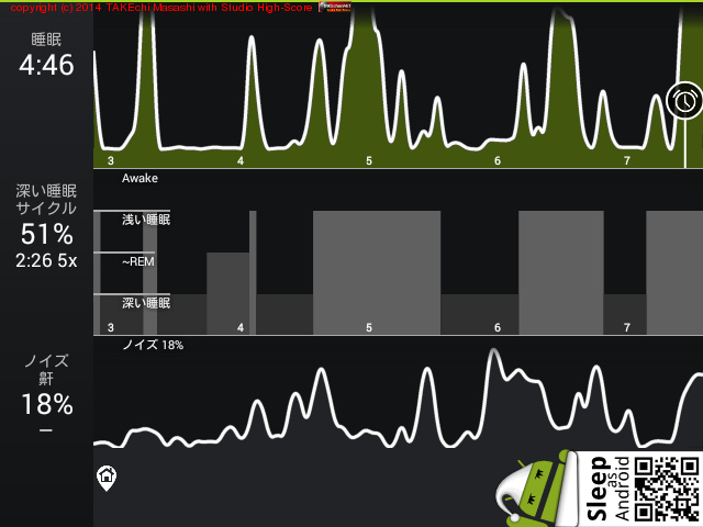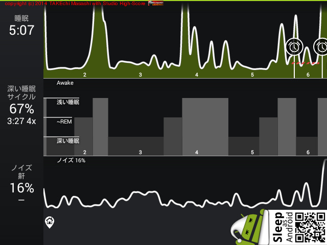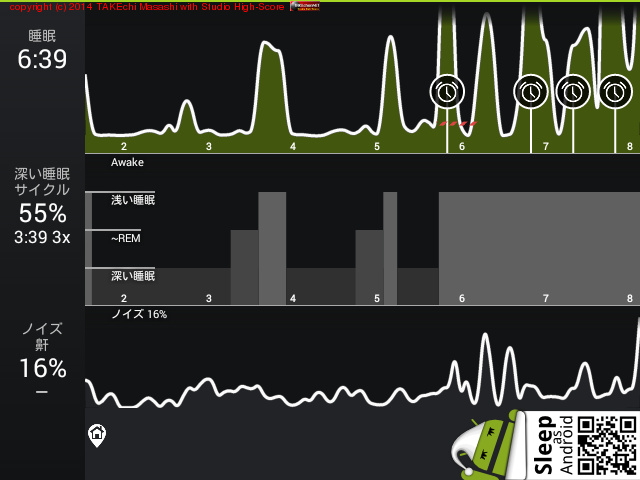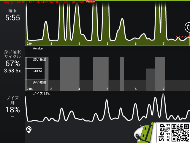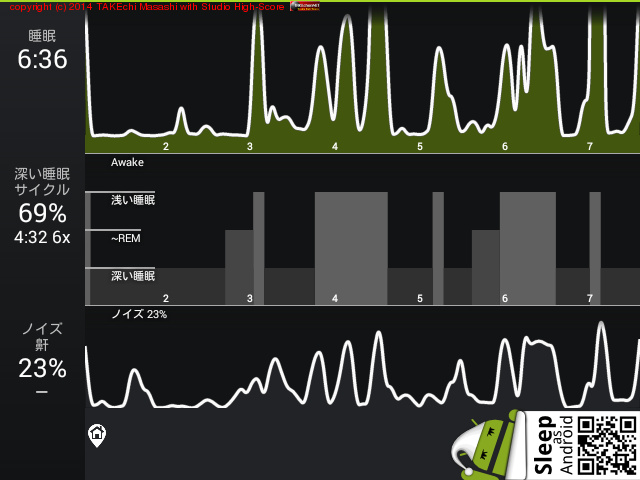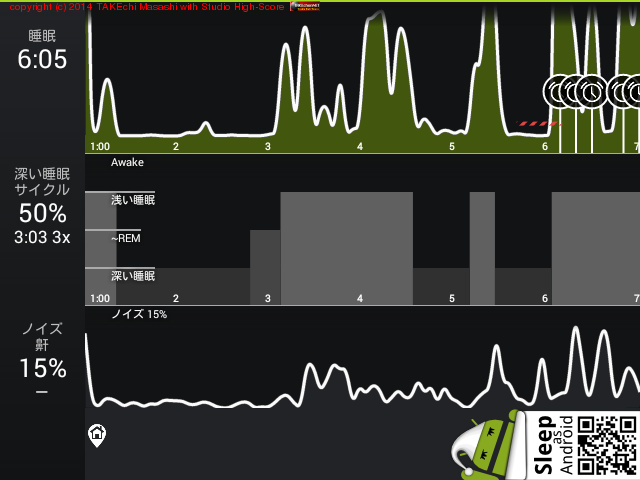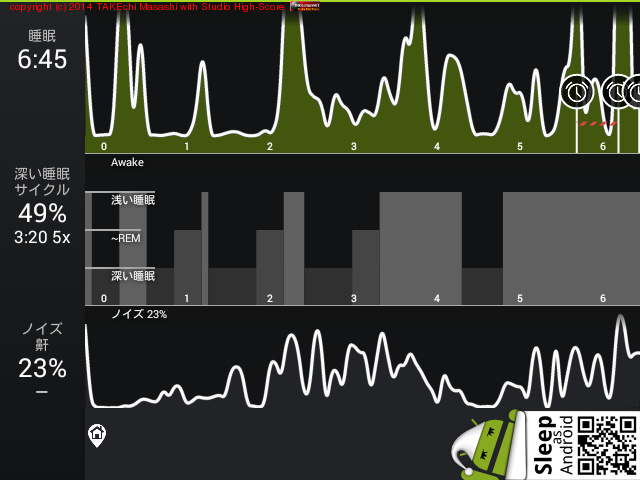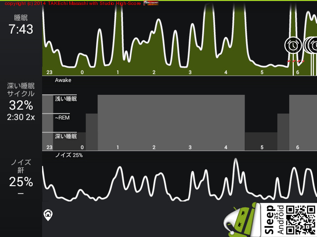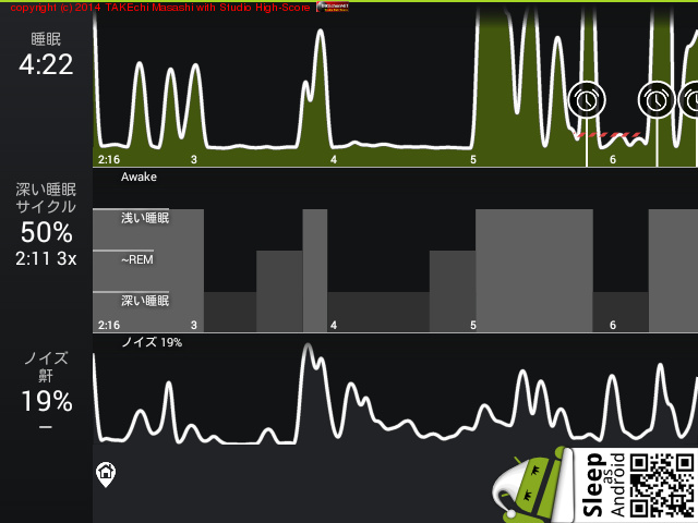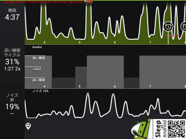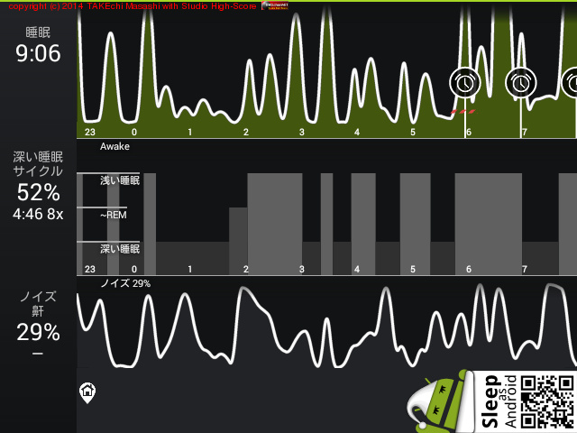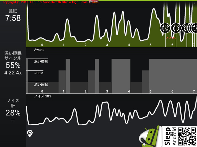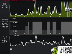 xx/xx x:xx → zz/zz x:xx (x:xx) 深い睡眠: xx% サイクル x