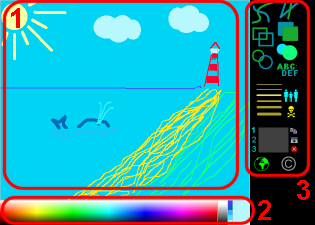 As you see, it can be divided to three parts: blackboard, colorpicker and menu.
